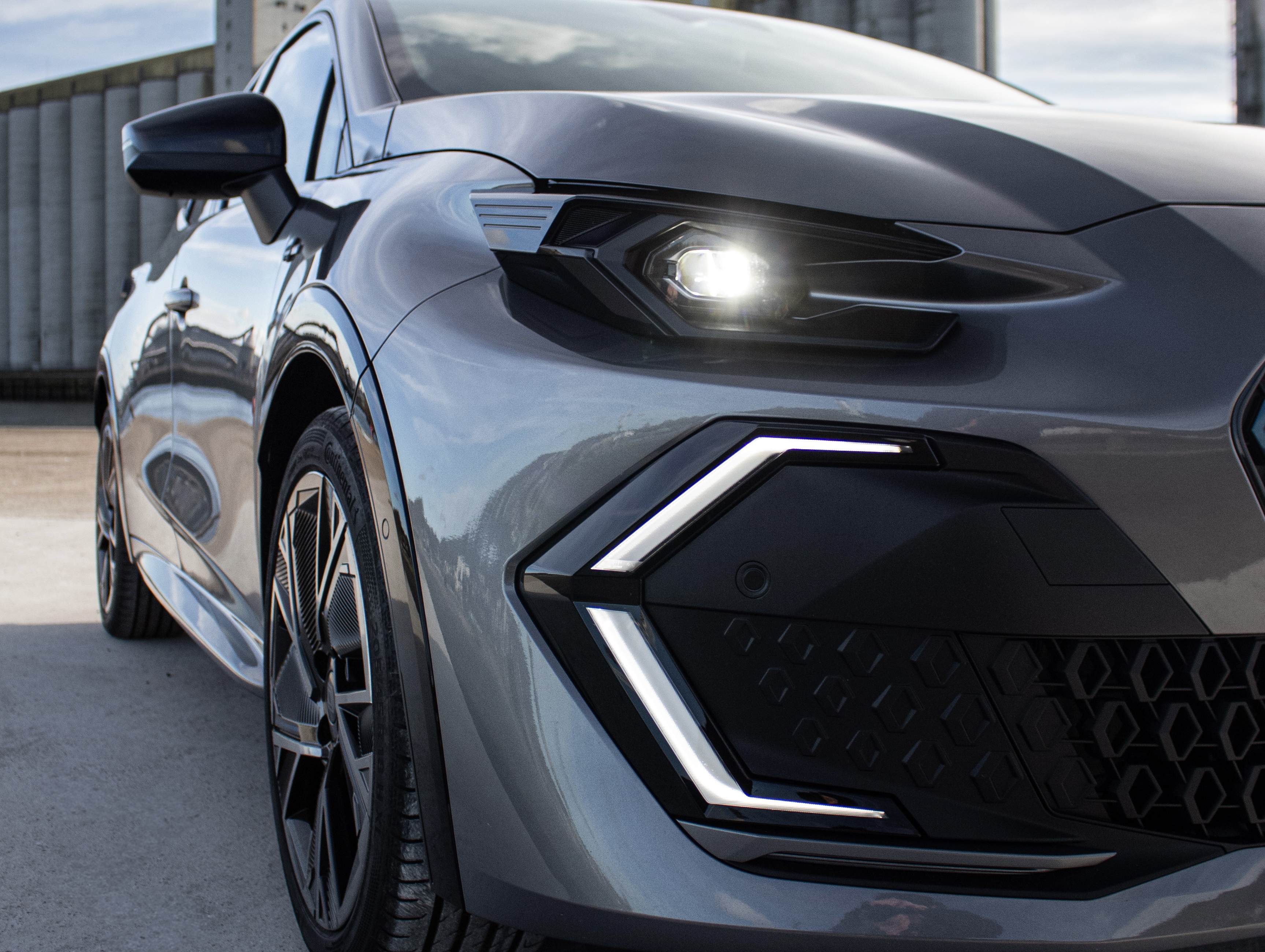 Le profil « coupé » de la citadine hybride réinvente les codes du segment. Feux traités comme des éléments esthétiques à part entière, découpe des vitres , becquet lui confèrent une silhouette sportive et une énergie latine.